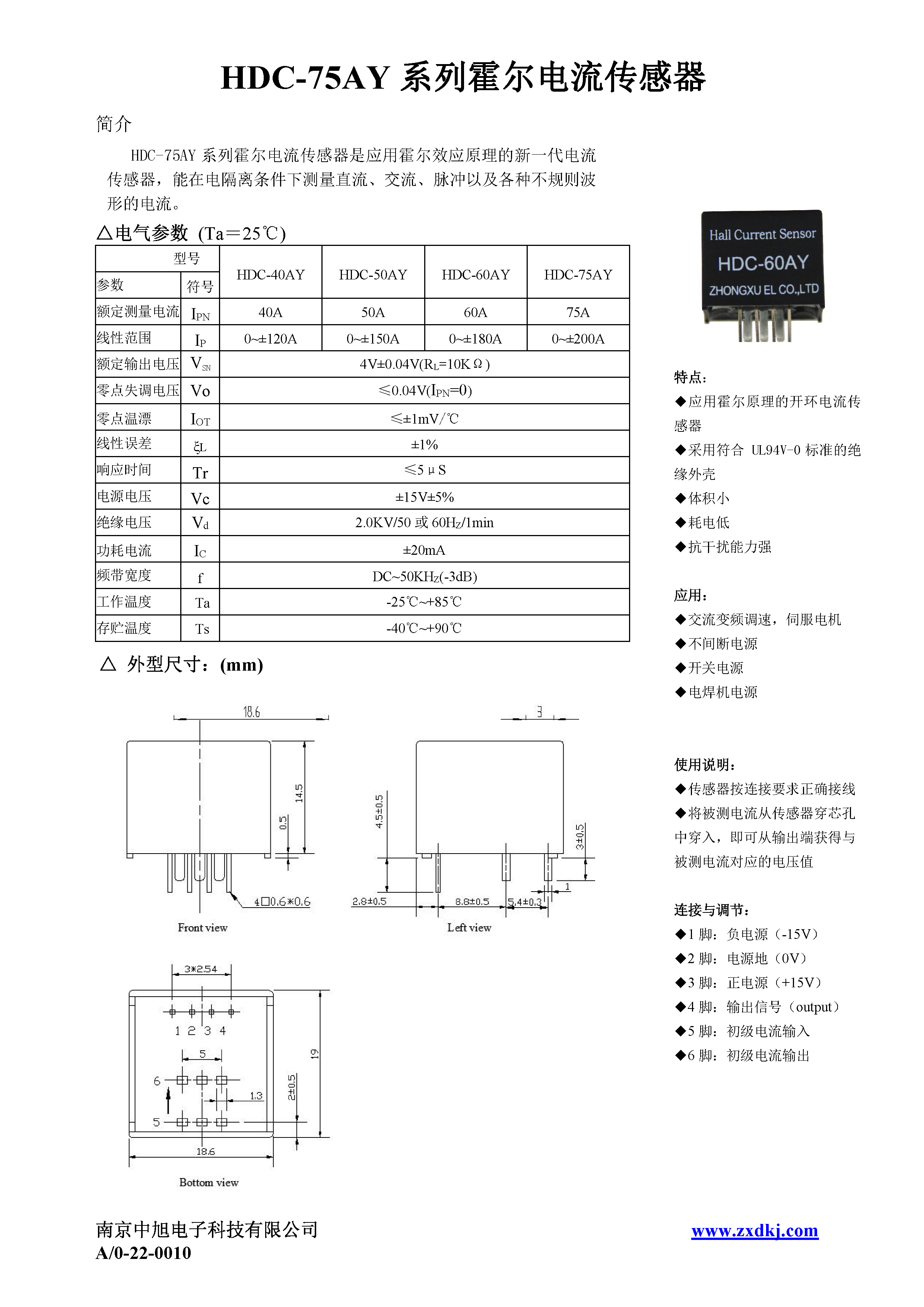 HDC-60AY系列霍爾電流傳感器是應(yīng)用霍爾效應(yīng)原理的新一代電流傳感器,能在電隔離條件下測(cè)量直流、交流、脈沖以及各種不規(guī)則波形的電流。